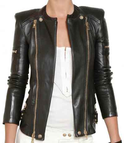 Balmain biker ladies jacket in Black or Brown 100% leather, the most beautiful jacket is made exactly similar and in fully Lambskin leather, slim fit. The jacket is made in very soft drum washed leather, it is made in a very high quality leathers and top workmanship.