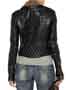 Concealed snap-fastening epaulettes, gold studded lapels, quilted panels, four zipped pockets, designer plaque, belt loops, paneled arms, zipped cuffs, fully lined
