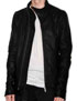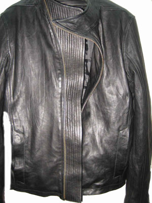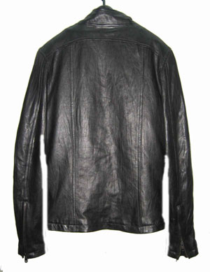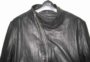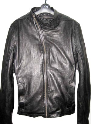 a funnel neck design, vintage treated leather and crinkled finish. Very