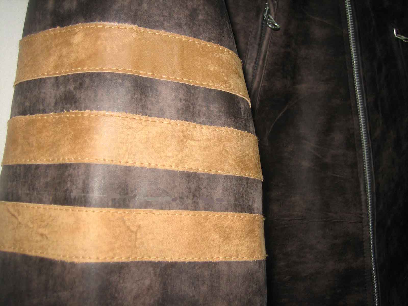 This is a perfect reproduction jacket of X-MEN movie worn by Wolverine in X-Men the movies, and is made in very high quality leathers. Made in 100% Antique Cowhide Leather. The jacket is beautifully made in Brown color with antique distressed effect and with the combination on the sleeves and waist, very limited.