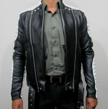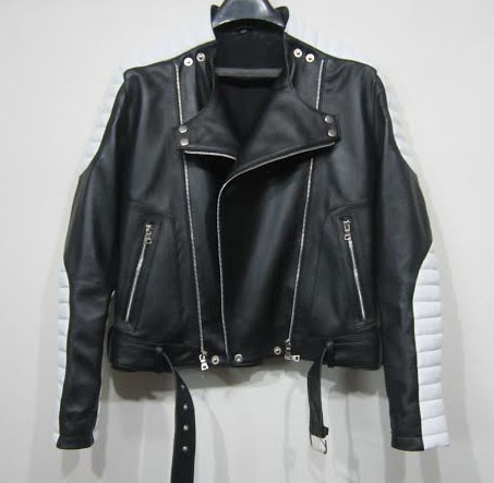 BALMAIN PADDED LEATHER MOTO JACKET BLACK & WHITE