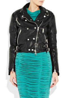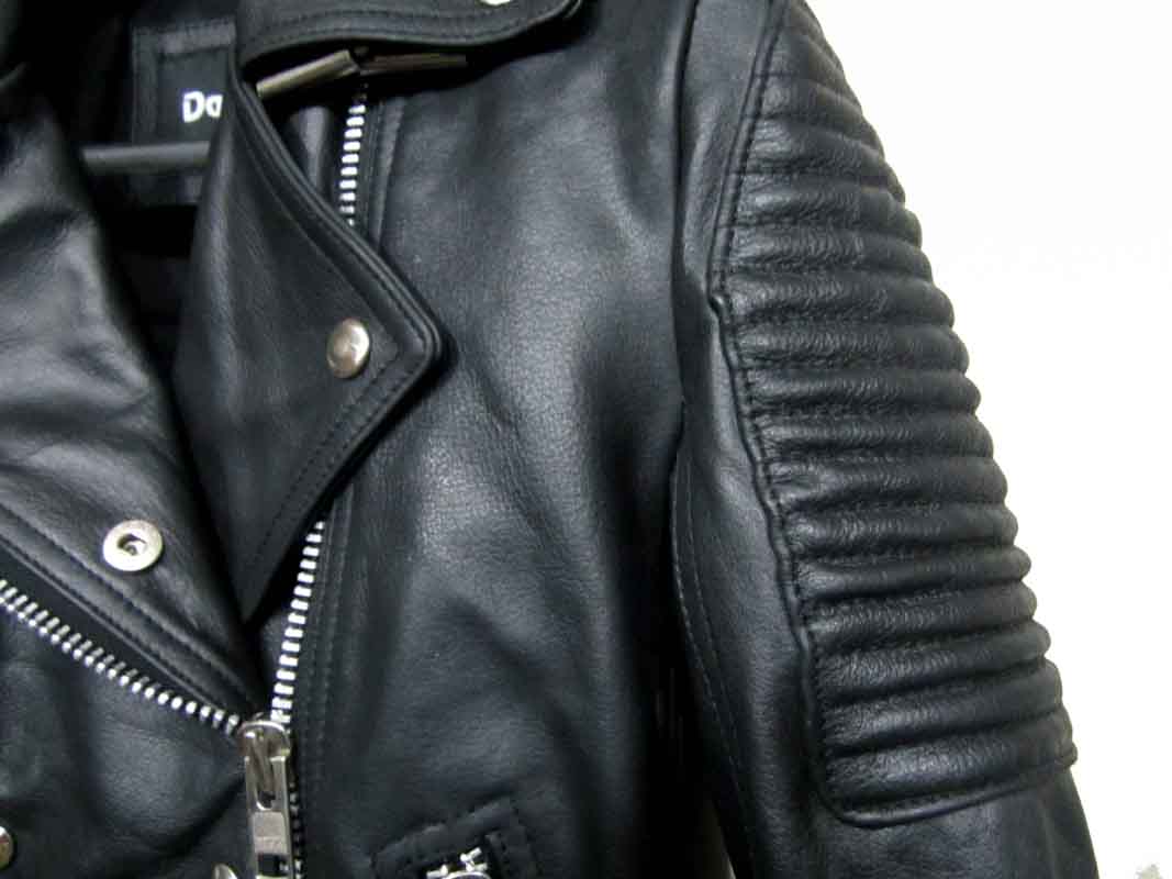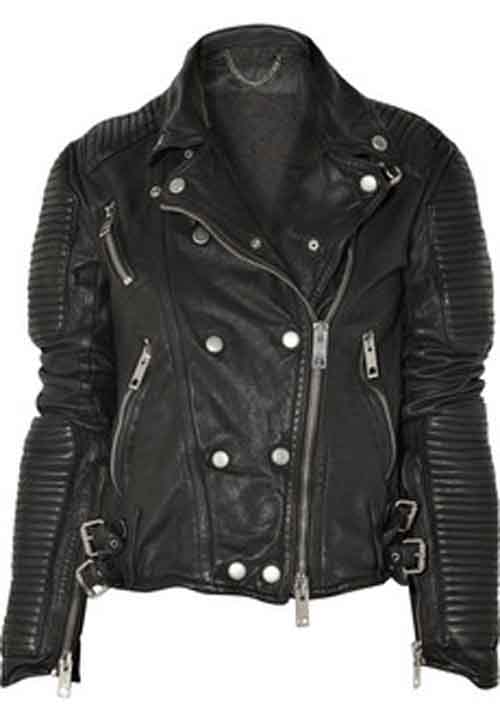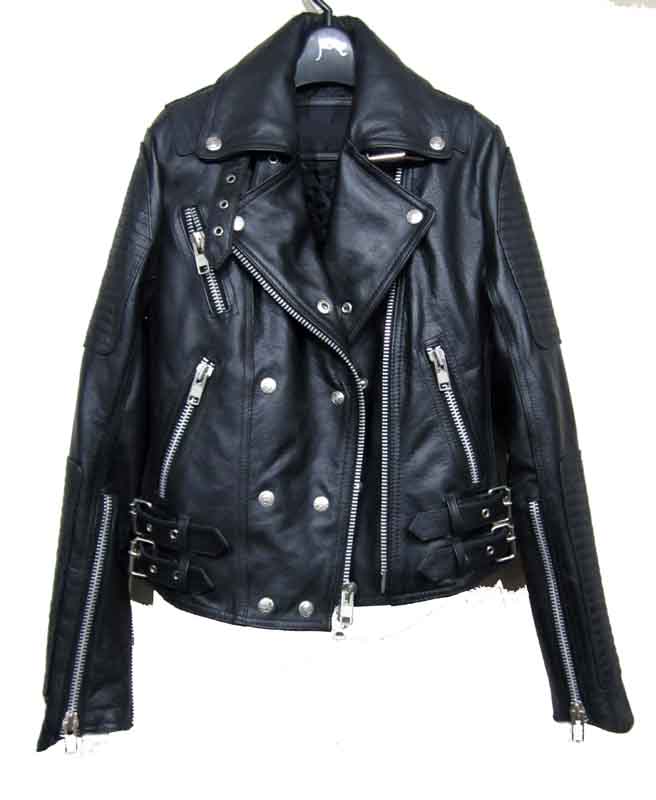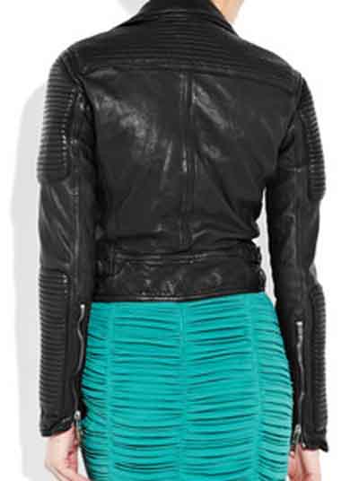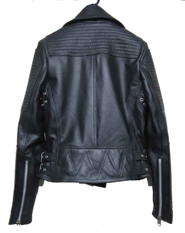 Prorsum Biker Jacket in Black 100% leather, this is made in fully Cowhide leather exactly similar, slim fit. The jacket is made in very soft drum washed leather. Quilted panels is a tough talking cool girl coverup, has silver hardware, a buckle-fastening collar and lapels, long sleeves with zipped cuff's, buckle tabs at sides of waist, zizzag stitching at the back of waist, asymmetric zip and press stud fastening through front, fully lined.