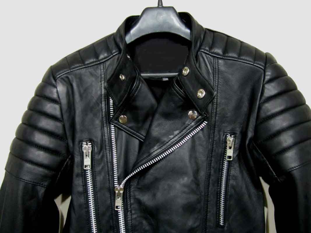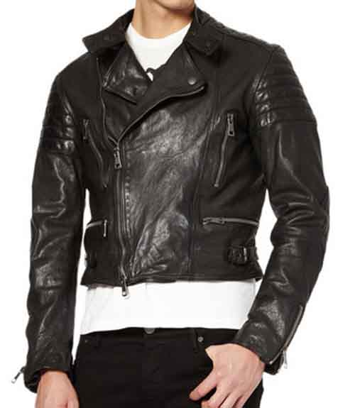 Prorsum Lindbergh Biker Jacket in Black 100% leather, this beautiful jacket is made exactly similar and in Lambskin washed leather, slim fit. The jacket is made in very soft drum washed leather, features snap fastening pin back lapel and front zip, four front pockets, side adjusting tabs, zip cuff's and paddings on the shoulders and elbows.