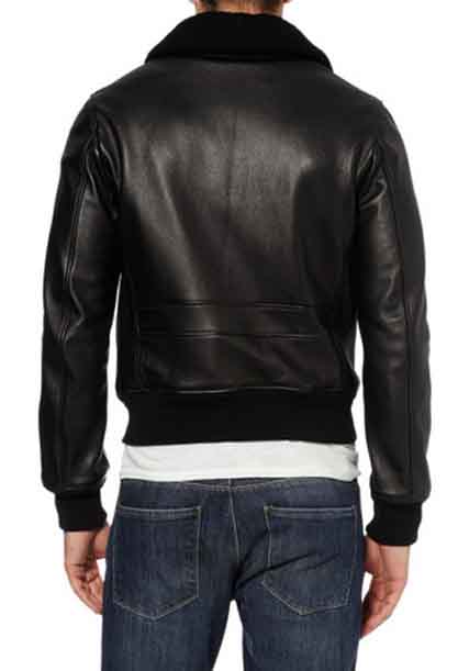 CLASSIC SAINT LAURENT LEATHER FLIGHT JACKET WITH SHEARLING COLLAR, GUSSETED ARMHOLES, 2 FLAP POCKETS AND RIBBED CUFFS AND HEM.
